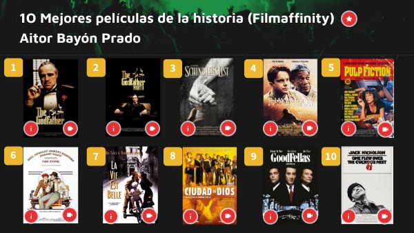 1O Mejores películas de la historia (Filmaffinity)Aitor Bayón Prado