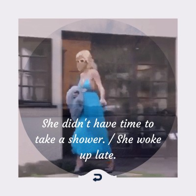 She didn't have time to take a shower. / She woke up late.