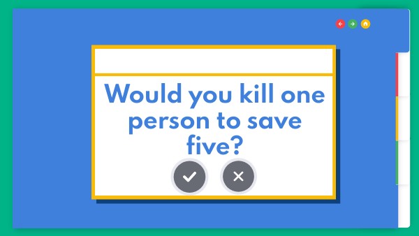 Choosing yes is an act of utilitarianism. It values consequences over intentions. Choosing no, on the other hand, is the opposite of utilitarianism, which is deontology that values intention over consequences.
