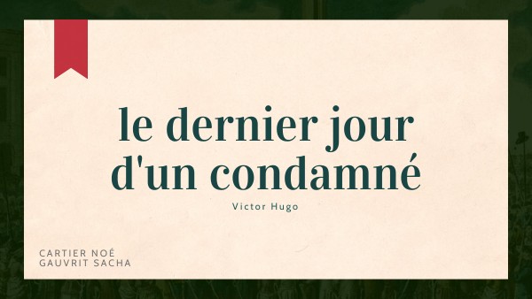 En voyant un bourreau préparant la guillotine, Victor Hugo, choqué, se mit à écrire Le dernier jour d'un condamné pour dénoncer l'horreur que vivent ceux qui subissent la peine capitale. En écrivant ce livre, Hugo souhaite toucher le lecteur et le convaincre de la nécessité d'abolir la peine de mort. Il utilise donc la persuasion et le registre pathétique.