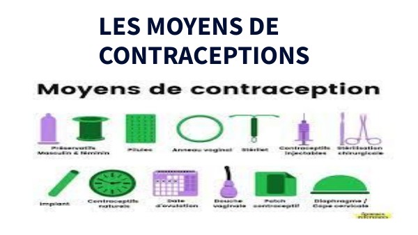 Il y a plusieurs et différents moyens de contraception chez la femme également et aussi chez l'homme, le moyens de contraception est une méthode visant à éviter, de façon réversible et temporaire, la fécondation d'un ovule par un spermatozoïde ou, s'il y a fécondation, la nidation de l'œuf fécondé. Et parfois certains moyens de contraception ont deux actions : ils empêchent le spermatozoïde de rencontrer l'ovule et ils empêchent l'ovule de devenir un bébé.