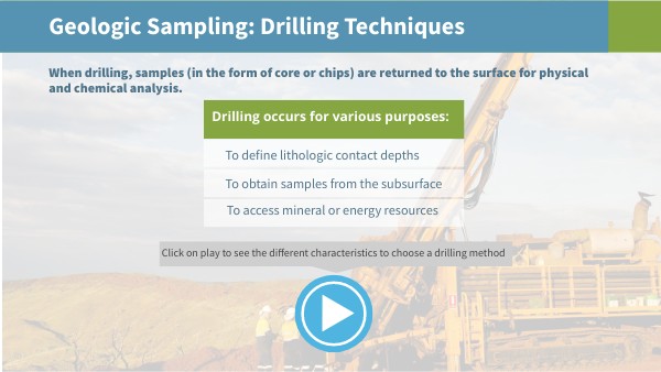 When drilling, samples (in the form of core or chips) are returned to the surface for physical and chemical analysis.