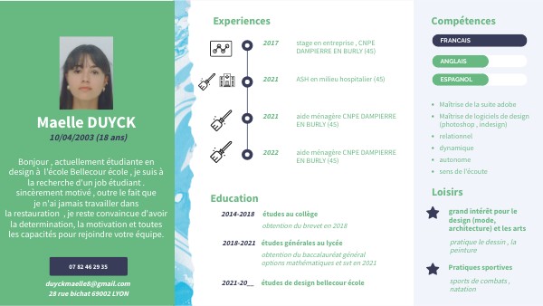 duyckmaelle8@gmail.com 28 rue bichat 69002 LYON