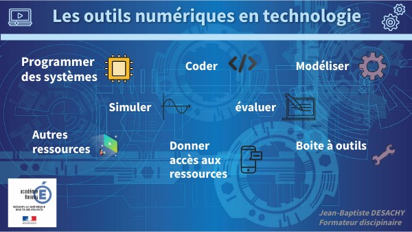 Voici un Genially qui regroupe les outils les plus intéressants pour l'enseignement de la technologie au collège. Il permettra aux nouveaux enseignants, mais également à tout ceux qui souhaitent avoir en quelques clics l'essentiel.