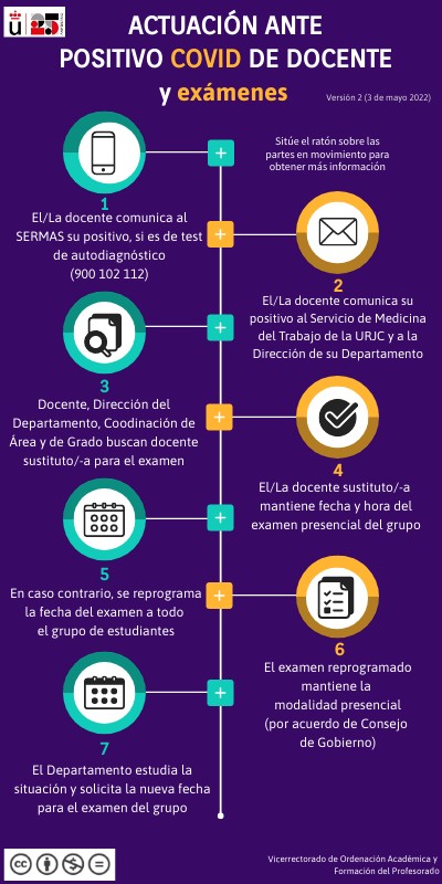 El/La docente comunica su positivo al Servicio de Medicina del Trabajo de la URJC y a la Dirección de su Departamento