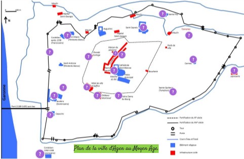 Plan de la ville d'Agen au Moyen Age.
