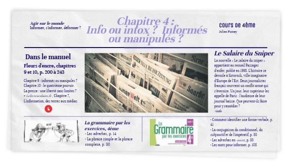 Voir aussi le manuel Fleurs d'encre p. 212-213 + L'activité à la page suivante ("Vérifier des informations")