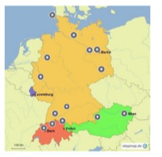 Carte virtuelle des pays germanophones réalisée par les élèves germanistes de 5e1, 5e2 et 4e3