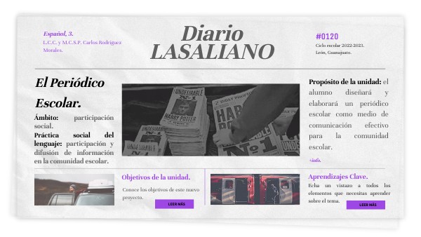 Propósito de la unidad: el alumno diseñará y elaborará un periódico escolar como medio de comunicación efectivo para la comunidad escolar.