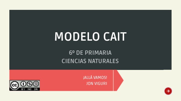 Estudiantes de 6º de Primaria, para realizar el proyecto sobre la contaminación y el cambio climático en la asignatura de Ciencias Naturales usaremos el modelo CAIT para facilitar el aprendizaje significativo y poder relacionar los contenidos nuevos con los que ya sabemos. Este modelo tiene 5 principios que os explicaré en las siguientes diapositivas. El proyecto tiene una duración de 8 sesiones y los objetivos curriculares que nos planteamos son: 1. Conocer qué es el cambio climático. 2. Ser consciente de cómo nos afecta el cambio climático. 3. Identificar pautas para cuidar el medio ambiente. 4. Desarrollar competencias digitales. Pero los objetivos no solo son los curriculares; también incluyen metas cognitivas como: 1. Identificar qué quiero aprender. 2. Desarrollo de valores como la colaboración con compañeros. 3. Desarrollar una perspectiva crítica.