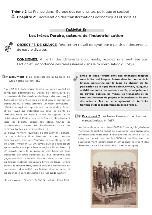 Activité 2:Les frères Pereire, acteurs de l'industrialisation