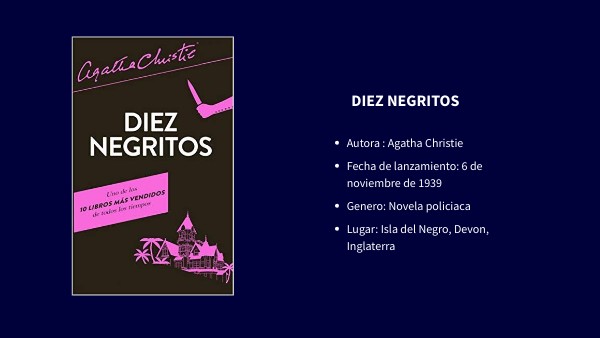 8 personas reciben una invitación para pasar unas vacaciones en la isla del negro, isla de la que todo el mundo esta hablando, sobretodo en la prensa. Aunque se desconoce quien es el dueño de la isla estas personas reciben una carta bajo el nombre U.N.O o como Mr.Owen, Mrs.Owen. Todos aceptan porque la persona que se lo envio dice haberlos conocido yaAl llegar a la isla se dan cuenta que los dueños no están, solo están los criados. En sus habitaciones todos tenían una canción infantil sobre diez negritos. Al bajar a tomar el te de repente empieza a sonar una voz que culpa a todos los que están allí incluyendo a los criados. Al cabo de un rato Anthony Martson se ahoga bebiendo, nadie pensaba que pudiera estar muerto pero se dan cuenta de que la bebida lleva cianuro y por eso murió. A la hora de dormir se dan cuenta de antes de la muerte de Martson había diez figuritas de porcelana mientras que ahora solo hay 9 y que su muerte esta relacionada con la canción. Les parecio casualidad hasta que a la mañana siguien Mrs.Rogers amanece muerta durimiendo y su muerte también esta asociada a la canción. Ademas desaparece otra figurita. Ahí todos se dan cuenta que hay un asesino. Cada vez que muere alguien su muerte se parece a la canción y además van desapareciendo figuritas.
