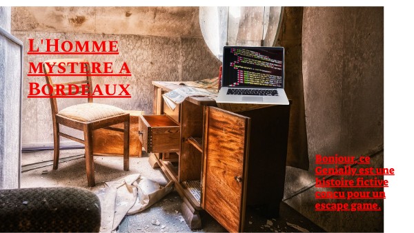 Bonjour, ce Genially est une histoire fictive concu pour un escape game.