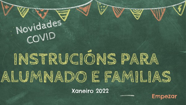 O equipo COVID do centro comunica ao profesorado a nova situación. O profesorado xustificará as faltas de asistencia. O profesorado contactará co alumnado afectado por correo electrónico ou aula virtual, para achegar tarefas, apuntamentos, e calquera traballo a realizar durante o confinamento. Lembra seguir en contacto coas clases e non descolgarte da actividade lectiva, sempre que a túa saúde cho permita.