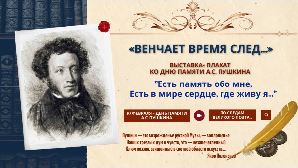 ВЫСТАВКА- ПЛАКАТ КО ДНЮ ПАМЯТИ А.С. ПУШКИНА