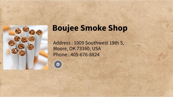 Address : 1009 Southwest 19th S, Moore, OK 73160, USA Phone : 405-676-8824 Website : http://boujeesmokeshop.com
