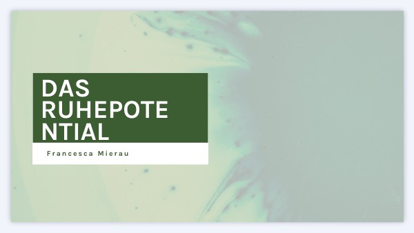 ●spezifische Verteilung von Ionen an der Nervenzellmembran ●resultiert aus selektiv permeabler Membran ●außerhalb Nervenzelle Natrium- und Chloridionen sowie Kaliumionen. ●innerhalb Zelle Kaliumionen, Proteine sowie Natriumionen ●Membran ist außen positiv und innen negativ geladen ●Spannung von -60 bis -110 mV anliegen