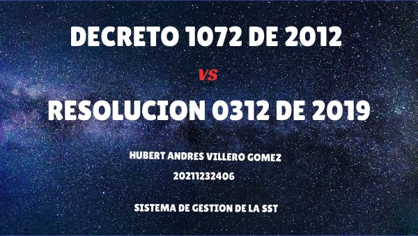 En el siguiente trabajo podra encontrar y ver un cuadro comparativo entre el Decreto 1072 de 2015 y la Resolucion 0312 de 2019. Ademas un informe y perspectivas sobre cual reglamento se debe diseñar un (SG-SST) para las empresas.