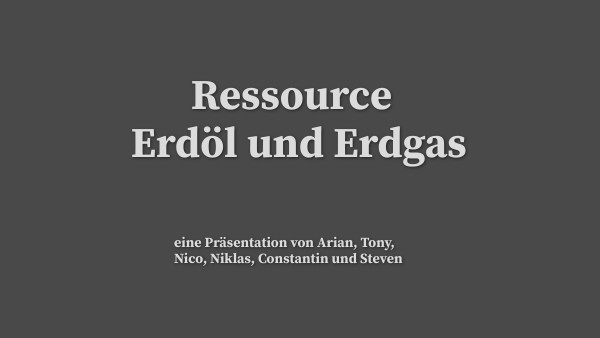Folie16 : - https://www.medewo.com/blog/wp-content/uploads/2020/08/hb_recycling-kunststoff-1-774x387.jpg 25.01.2022 - https://www.dena.de/fileadmin/_processed_/1/c/csm_Akteure_im_Dialog_92582cb2ae.jpg 25.01.2022 - https://www.wissenschaft-im-dialog.de/projekte/wieso/artikel/beitrag/kann-plastik-in-erdoel-zurueckverwandelt-werden/ 25.01.2022 Folie14 und 16 : - https://www.stuttgarter-nachrichten.de/inhalt.anzeige-das-steckt-alles-drin-motorola-edge-span-small-sup-20-sup-small-span-smartphone-mit-style-und-intelligenter-kamera.69815098-6520-4d9a-bee2-0f6cd1c8db24.html? 21.12.2021 - utm_source=outbrain&utm_medium=native&utm_campaign=motorolaedge20&utm_term=style&utm_content=design2 21.12.2021 - https://www.gutefrage.net/frage/erdoel-probleme 21.12.2021 - https://www.energie-klimaschutz.de/erdgas-fracking-2/ 21.12.2021 Folie10,11 : Erdgas Deutschland - https://de.statista.com/themen/4687/erdgas-in-deutschland 20.12.2021 - https://www.bmwi.de/Redaktion/DE/Artikel/Energie/gas-erdgasversorgung-in-deutschland.html 20.12.2021 - https://de.wikipedia.org/wiki/Erdgas 20.12.2021 - https://www.lbeg.niedersachsen.de/erdoel-erdgas-reservenbericht/kurzbericht-erdoel-und-erdgasreserven-in-der-bundesrepublik-deutschland-786.html 20.21.2021 Welt - https://energiestatistik.enerdata.net/erdgas/welt-erdgas-produktion-statistik.html 21.12.2021 - https://energiestatistik.enerdata.net/erdgas/erdgas-verbrauch-data.html 21.12.2021 - https://de.wikipedia.org/wiki/Erdgas 21.12.2021 - https://crp-infotec.de/energie-erdgas/ 21.12.2021 Erdöl Deutschland - https://www.bveg.de/Erdgas/Zahlen-und-Fakten/Erdoel-Bundeslaender 30.12.2021 - https://de.statista.com/statistik/daten/studie/36171/umfrage/verbrauch-von-erdoel-in-deutschland-seit-1990/ 30.12.2021 - https://de.wikipedia.org/wiki/Erdöl/Tabellen_und_Grafiken#Import_nach_Ländern 30.12.2021 - https://www.destatis.de/DE/Presse/Pressemitteilungen/2019/09/PD19_369_51.html 30.12.2021 - https://www.tagesschau.de/wirtschaft/konjunktur/oelpeise-vorraete-freigeben-usa-deutschland-101.html 30.12.2021 Welt https://de.wikipedia.org/wiki/Erdöl/Tabellen_und_Grafiken#Förderung 28.12.2021 https://de.wikipedia.org/wiki/Erdöl/Tabellen_und_Grafiken#Reserven_nach_Ländern 28.12.2021 https://www.bp.com/content/dam/bp/business-sites/en/global/corporate/pdfs/energy-economics/statistical-review/bp-stats-review-2019-full-report.pdf 28.12.2021 https://www.eia.gov/todayinenergy/detail.php?id=46596#:~:text=The%20U.S.%20Energy%20Information%20Administration,that%20dates%20back%20to%201980. 29.12.2021 https://de.wikipedia.org/wiki/Erdöl/Tabellen_und_Grafiken#Verbrauch_nach_Ländern 29.12.2021