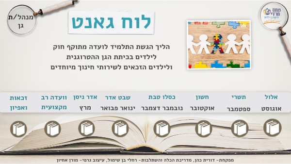 מפקחת- דורית כהן, מדריכת הכלה והשתלבות- רחלי בן שימול, עיצוב גרפי- מורן אחיון