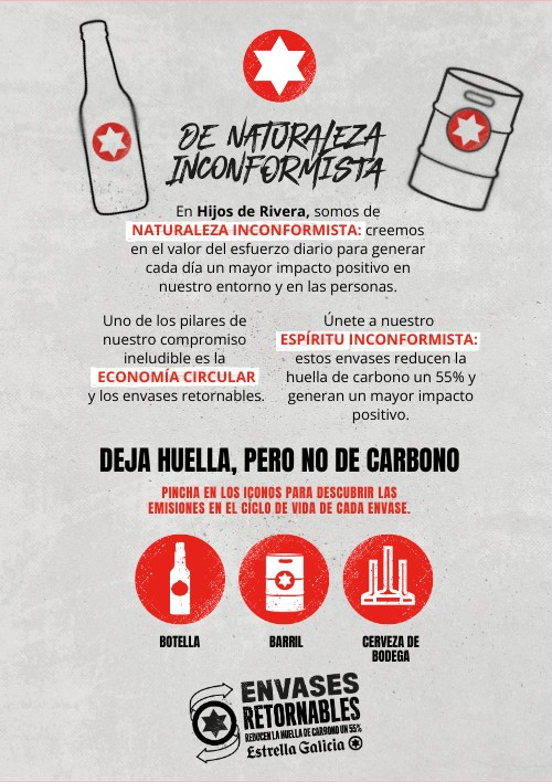 Únete a nuestro ESPÍRITU INCONFORMISTA: estos envases reducen la huella de carbono un 55% y generan un mayor impacto positivo.