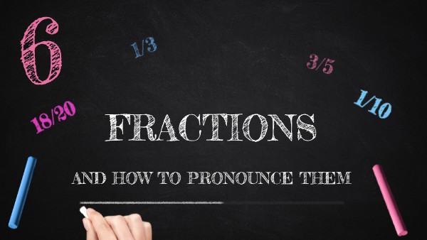 cardinal nb + ordinal nb* Ex 1 = 1/5 : "one fifth" Ex 2 = 2/7: "two sevenths*" Ex 3 = 1/2 : "(a/one) half" Ex 4 = 1/4 : "a quarter"