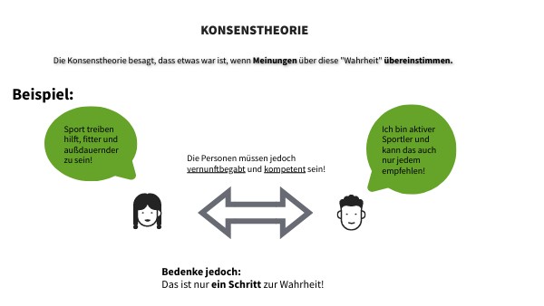 Die Konsenstheorie besagt, dass etwas war ist, wenn Meinungen über diese "Wahrheit" übereinstimmen.