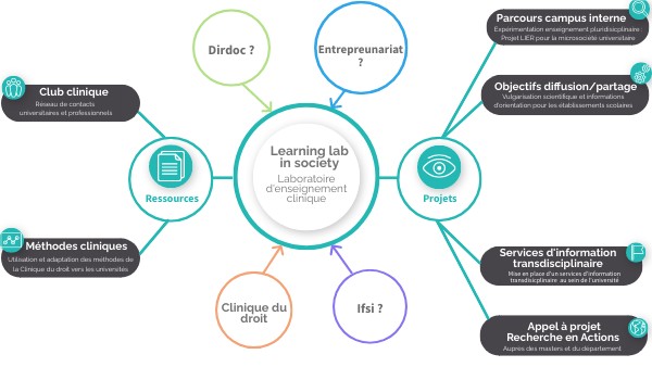 La Clinique du droit a pour objectif de concevoir un living lab d'enseignement clinique ("learning lab in society") permettant de promouvoir et d'accompagner la création de méthodes d'enseignement et de recherche multidisciplinaires à l'attention de la société "campus" de l'université de Bordeaux et plus largement des territoires de proximité et internationaux.
