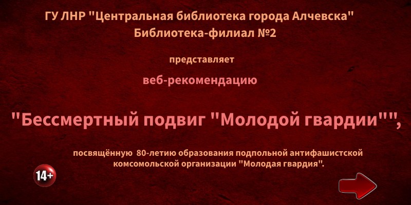 Веб-рекомендацию подготовила:Анашкина О. А., библиотекарь библиотеки-филиала № 2 ГУ ЛНР "Центральная библиотека города Алчевска"