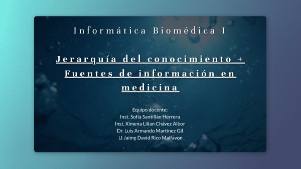 Informática Biomédica I Jerarquía del conocimiento + Fuentes de información en medicina