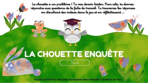 La chouette a un problème ! Tu vas devoir l''aider. Pour cela, tu devras répondre aux questions de la fiche de travail. Tu trouveras les réponses en cherchant des indices dans le jeu et en réfléchissant ...