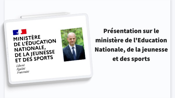 - Jean-Michel Blanquer, 58 ans, Née à Paris -Ministre de l'éducation nationale depuis 2017 sous le gouvernement d'Edouard Philippe -Attaché d'enseignement et de recherche, directeur de l'IHEAL, Directeur générale de l'enseignement scolaire, Directeur de l'ESSEC