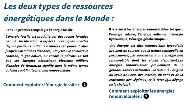 Les deux types de ressources énergétiques dans le Monde :