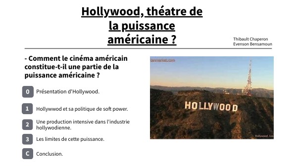 les limites du soft power: - raisons géopolitiques car certains pays sont fermés ou semi ouverts à la publication de films américains dans leur pays. -l'Amérique a parfois tendance à trop se valoriser, quitte à mentir ce qui peut parfois créer des tensions avec certains autre pays.