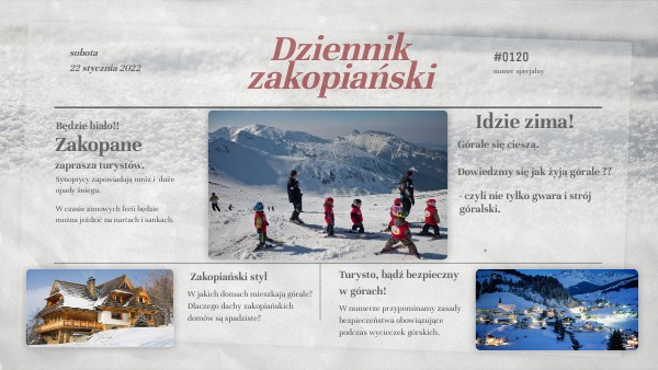 Drodzy Drugoklasiści, przejdźcie na następne slajdy, by zobaczyć jak wyglądają Krupówki, Wielka Krokiew, Kasprowy Wierch oraz góralskie domy i stroje.