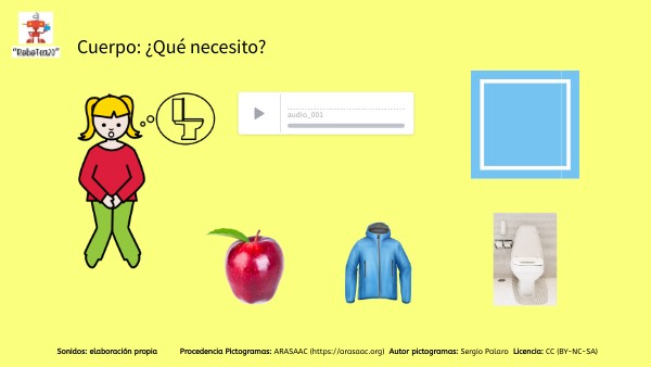 Sonidos: elaboración propia Procedencia Pictogramas: ARASAAC (https://arasaac.org) Autor pictogramas: Sergio Palaro Licencia: CC (BY-NC-SA)
