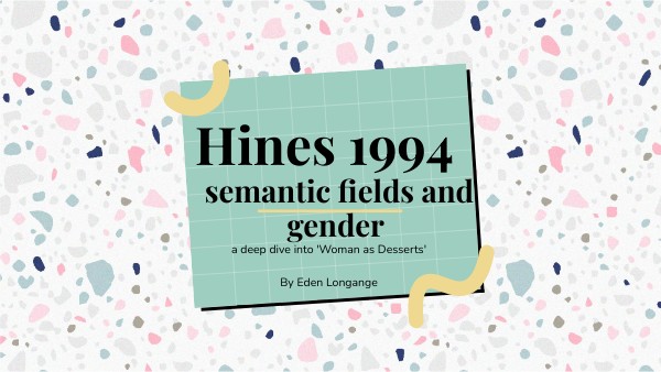- Hines focussed on the semantic fields of women and her most famous and analysed study was titled 'Woman as Desserts'