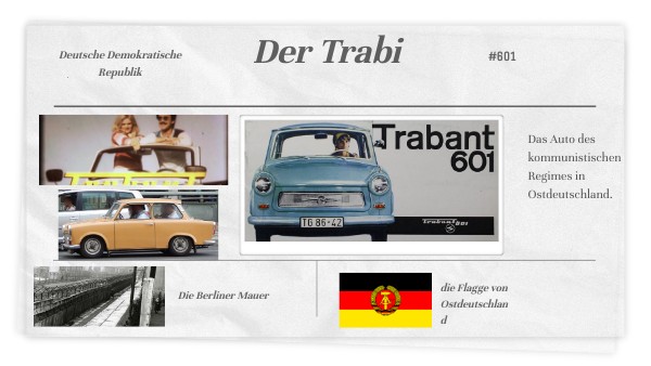 •produziert von IFA • klein sein • nicht mehr als 600 kg •5 liter Benzin/100 Km • 12.000 /Jahr. • 4 000 DM