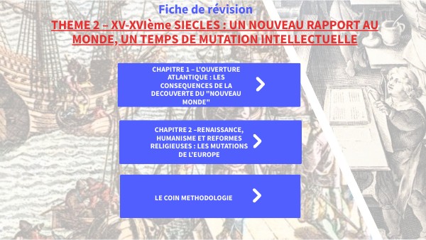 THEME 2 – XV-XVIème SIECLES : UN NOUVEAU RAPPORT AU MONDE, UN TEMPS DE MUTATION INTELLECTUELLE