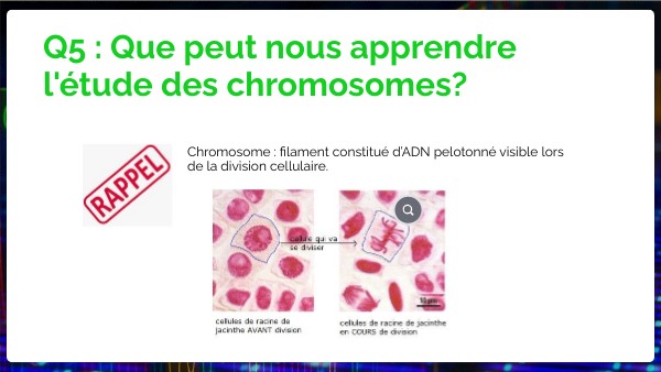 Q5 : Que peut nous apprendre l'étude des chromosomes?