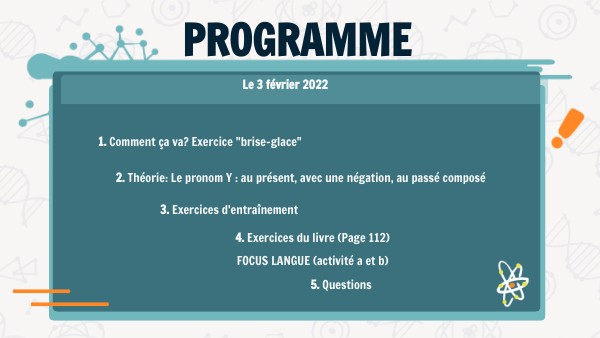 2. Théorie: Le pronom Y : au présent, avec une négation, au passé composé