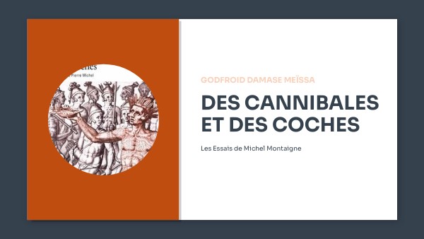•Montaigne montre que l'on appelle « barbare » ce qui est proche de la nature •Pour lui, les civilisations dont on découvre l'existence, sont des sociétés vertueuses qui connaissent le respect des anciens, de l'honneur et de la fidélité. •Leurs coutumes anthropophages pour se venger de leurs ennemis peuvent sembler barbares, mais les Européens pratiquent la torture, autrement plus barbare. •A la fin du chapitre, Montaigne narre sa rencontre avec trois brésiliens venus à Rouen. Ces deniers s'étonnent du système politique français.