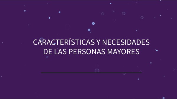 CARACTERÍSTICAS Y NECESIDADES DE LAS PERSONAS MAYORES