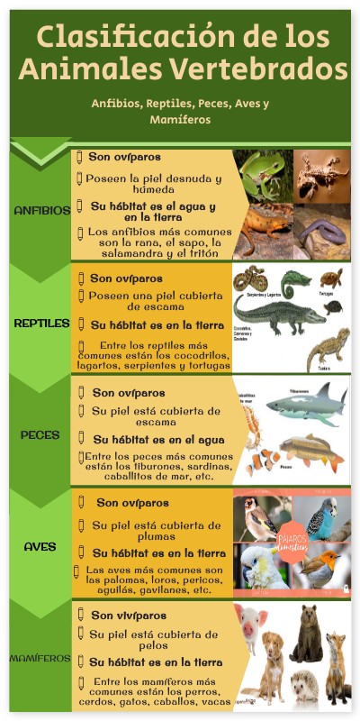 Anfibios, Reptiles, Peces, Aves y Mamíferos