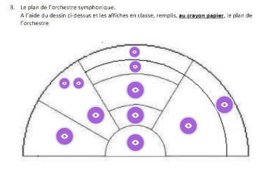 Plan interactif pour apprendre où se situent les différentes familles d'instruments dans l'orchestre.