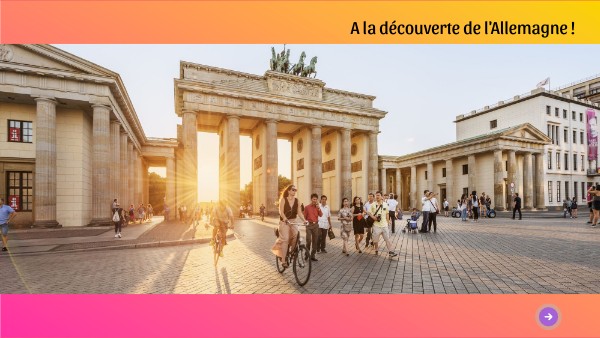 Hallo ! Bienvenue à cette séance de découverte ! A travers cette balade, tu vas découvrir ce qu'il se passe chez nos voisins les allemands, et te rendre compte que cette langue n'est pas si difficile qu'elle n'y parait ! Sais-tu par exemple que l'allemand est une langue très proche de l'anglais? Apprendre ces deux langues te fera progresser plus rapidement. Alors, pourquoi ne pas te démarquer en choisissant l'allemand dès la 6e ? Pars vite à la découverte de l'Allemagne et de ses richesses ! Tu verras: Deutsch ist fantastisch !