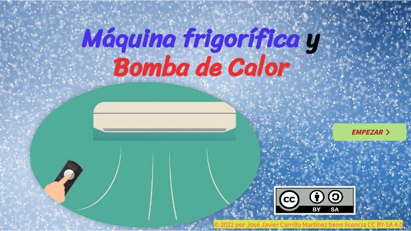 Presentación interactiva sobre descripción, eficiencia, funcionamiento y ciclo teórico de la máquina frigorífica y bomba de calor. Materia Tecnología Industrial II. Nivel 2º Bachillerato. Autor José Javier Carrillo Martínez. Fecha 5/2/2022. Licencia: CC BY-SA 4.0