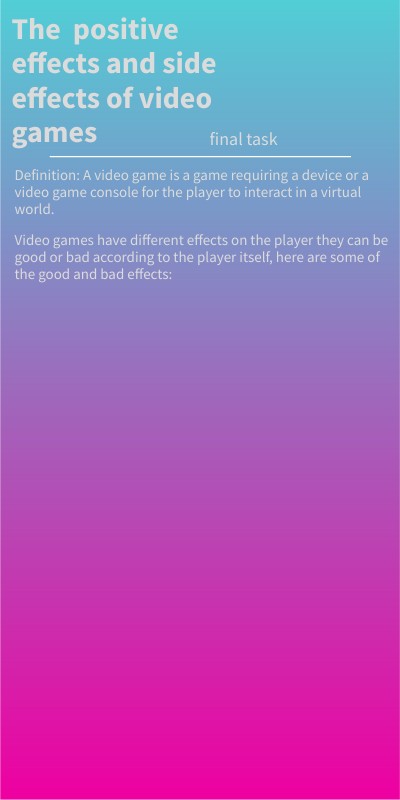 Video games have different effects on the player they can be good or bad according to the player itself, here are some of the good and bad effects: