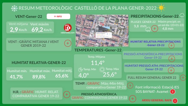 RESUM METEOROLÒGIC CASTELLÓ DE LA PLANA GENER-2022