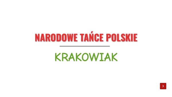Krakowiak należy do polskich tańców narodowych. Jest to ludowy taniec utrzymany w metrum . Pochodzi z okolic Krakowa, ma żywe tempo i wesoły, skoczny charakter.Podstawowym krokiem tego tańca jest cwał, polegający na szybkim dostawianiu ułożonej bokiem stopy do drugiej nogi.